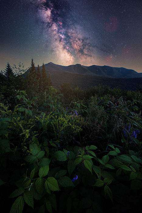 These mountains make up some of the most rugged and dramatic scenes in all the Northeastern USA. The area around the White Mountains is beautiful and mainly dark, with a low level of light pollution making it ideal for capturing the Milky Way. During the summer months when you will be exploring the area with the group, there is also an abundance of wildflowers given the proper summer conditions!